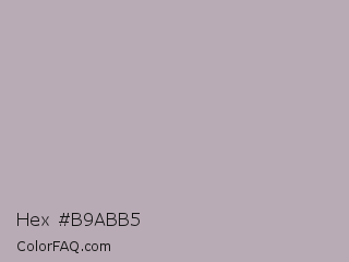 Hex #b9abb5 Color is a light magenta color and the nearest color is Nobel #b7b1b1. Hex code #b9abb5 and RGB value is rgb(185,171,181). In RGB color space, this color is composed of 73% red, 67% green, 71% blue, In CMYK color space, this color is composed of 0% cyan, 8% magenta, 2% yellow , 27% black , In HSL color space, this color has a hue angle of 317° , 9% saturation and 70% lightness.