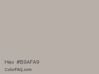 Hex #b9afa9 Color is a light orange color and the nearest color is Silk #bdb1a8. Hex code #b9afa9 and RGB value is rgb(185,175,169). In RGB color space, this color is composed of 73% red, 69% green, 66% blue, In CMYK color space, this color is composed of 0% cyan, 5% magenta, 9% yellow , 27% black , In HSL color space, this color has a hue angle of 23° , 10% saturation and 69% lightness.