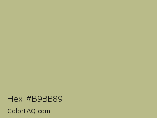 Hex #b9bb89 Color is a light yellow color and the nearest color is Sage #bcb88a. Hex code #b9bb89 and RGB value is rgb(185,187,137). In RGB color space, this color is composed of 73% red, 73% green, 54% blue, In CMYK color space, this color is composed of 1% cyan, 0% magenta, 27% yellow , 27% black , In HSL color space, this color has a hue angle of 62° , 27% saturation and 64% lightness.