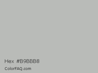 Hex #b9bbb8 Color is a light green color and the nearest color is Pink Swan #beb5b7. Hex code #b9bbb8 and RGB value is rgb(185,187,184). In RGB color space, this color is composed of 73% red, 73% green, 72% blue, In CMYK color space, this color is composed of 1% cyan, 0% magenta, 2% yellow , 27% black , In HSL color space, this color has a hue angle of 100° , 2% saturation and 73% lightness.