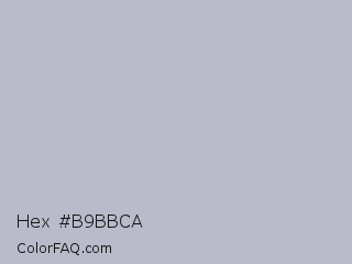 Hex #b9bbca Color is a light blue color and the nearest color is French Gray #bdbdc6. Hex code #b9bbca and RGB value is rgb(185,187,202). In RGB color space, this color is composed of 73% red, 73% green, 79% blue, In CMYK color space, this color is composed of 8% cyan, 7% magenta, 0% yellow , 21% black , In HSL color space, this color has a hue angle of 233° , 14% saturation and 76% lightness.