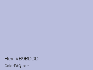 Hex #b9bddd Color is a light blue color and the nearest color is Lavender Gray #bdbbd7. Hex code #b9bddd and RGB value is rgb(185,189,221). In RGB color space, this color is composed of 73% red, 74% green, 87% blue, In CMYK color space, this color is composed of 16% cyan, 14% magenta, 0% yellow , 13% black , In HSL color space, this color has a hue angle of 233° , 35% saturation and 80% lightness.