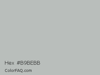Hex #b9bebb Color is a light green color and the nearest color is Gray X11 Gray #bebebe. Hex code #b9bebb and RGB value is rgb(185,190,187). In RGB color space, this color is composed of 73% red, 75% green, 73% blue, In CMYK color space, this color is composed of 3% cyan, 0% magenta, 2% yellow , 25% black , In HSL color space, this color has a hue angle of 144° , 4% saturation and 74% lightness.