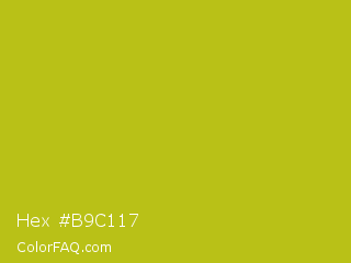 Hex #b9c117 Color is a normal yellow color and the nearest color is La Rioja #b3c110. Hex code #b9c117 and RGB value is rgb(185,193,23). In RGB color space, this color is composed of 73% red, 76% green, 9% blue, In CMYK color space, this color is composed of 4% cyan, 0% magenta, 88% yellow , 24% black , In HSL color space, this color has a hue angle of 63° , 79% saturation and 42% lightness.