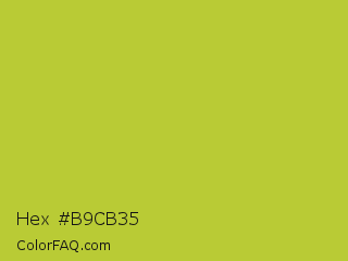 Hex #b9cb35 Color is a normal yellow color and the nearest color is Key Lime Pie #bfc921. Hex code #b9cb35 and RGB value is rgb(185,203,53). In RGB color space, this color is composed of 73% red, 80% green, 21% blue, In CMYK color space, this color is composed of 9% cyan, 0% magenta, 74% yellow , 20% black , In HSL color space, this color has a hue angle of 67° , 59% saturation and 50% lightness.