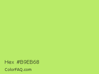 Hex #b9eb68 Color is a light green color and the nearest color is Inchworm #b2ec5d. Hex code #b9eb68 and RGB value is rgb(185,235,104). In RGB color space, this color is composed of 73% red, 92% green, 41% blue, In CMYK color space, this color is composed of 21% cyan, 0% magenta, 56% yellow , 8% black , In HSL color space, this color has a hue angle of 83° , 77% saturation and 66% lightness.