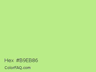 Hex #b9eb86 Color is a light green color and the nearest color is Sulu #c1f07c. Hex code #b9eb86 and RGB value is rgb(185,235,134). In RGB color space, this color is composed of 73% red, 92% green, 53% blue, In CMYK color space, this color is composed of 21% cyan, 0% magenta, 43% yellow , 8% black , In HSL color space, this color has a hue angle of 90° , 72% saturation and 72% lightness.