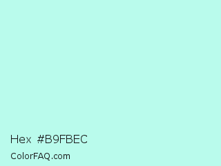 Hex #b9fbec Color is a very light cyan color and the nearest color is Ice Cold #b1f4e7. Hex code #b9fbec and RGB value is rgb(185,251,236). In RGB color space, this color is composed of 73% red, 98% green, 93% blue, In CMYK color space, this color is composed of 26% cyan, 0% magenta, 6% yellow , 2% black , In HSL color space, this color has a hue angle of 166° , 89% saturation and 85% lightness.