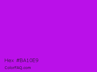 Hex #ba10e9 Color is a normal purple color and the nearest color is Vivid Mulberry #b80ce3. Hex code #ba10e9 and RGB value is rgb(186,16,233). In RGB color space, this color is composed of 73% red, 6% green, 91% blue, In CMYK color space, this color is composed of 20% cyan, 93% magenta, 0% yellow , 9% black , In HSL color space, this color has a hue angle of 287° , 87% saturation and 49% lightness.