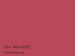 Hex #ba485b Color is a normal red color and the nearest color is Popstar #be4f62. Hex code #ba485b and RGB value is rgb(186,72,91). In RGB color space, this color is composed of 73% red, 28% green, 36% blue, In CMYK color space, this color is composed of 0% cyan, 61% magenta, 51% yellow , 27% black , In HSL color space, this color has a hue angle of 350° , 45% saturation and 51% lightness.