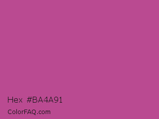 Hex #ba4a91 Color is a normal magenta color and the nearest color is Mulberry #c54b8c. Hex code #ba4a91 and RGB value is rgb(186,74,145). In RGB color space, this color is composed of 73% red, 29% green, 57% blue, In CMYK color space, this color is composed of 0% cyan, 60% magenta, 22% yellow , 27% black , In HSL color space, this color has a hue angle of 322° , 45% saturation and 51% lightness.