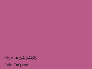 Hex #ba5a88 Color is a normal rose color and the nearest color is Tapestry #b05e81. Hex code #ba5a88 and RGB value is rgb(186,90,136). In RGB color space, this color is composed of 73% red, 35% green, 53% blue, In CMYK color space, this color is composed of 0% cyan, 52% magenta, 27% yellow , 27% black , In HSL color space, this color has a hue angle of 331° , 41% saturation and 54% lightness.