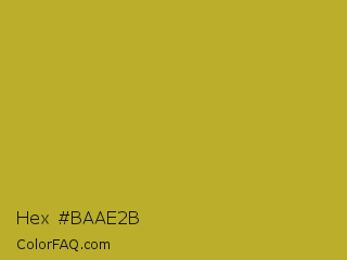 Hex #baae2b Color is a normal yellow color and the nearest color is Hokey Pokey #c8a528. Hex code #baae2b and RGB value is rgb(186,174,43). In RGB color space, this color is composed of 73% red, 68% green, 17% blue, In CMYK color space, this color is composed of 0% cyan, 6% magenta, 77% yellow , 27% black , In HSL color space, this color has a hue angle of 55° , 62% saturation and 45% lightness.