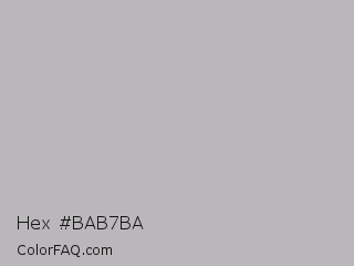 Hex #bab7ba Color is a light magenta color and the nearest color is Pink Swan #beb5b7. Hex code #bab7ba and RGB value is rgb(186,183,186). In RGB color space, this color is composed of 73% red, 72% green, 73% blue, In CMYK color space, this color is composed of 0% cyan, 2% magenta, 0% yellow , 27% black , In HSL color space, this color has a hue angle of 300° , 2% saturation and 72% lightness.