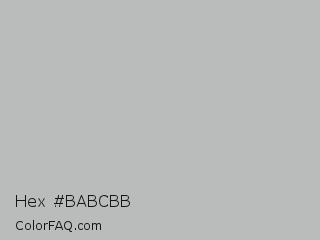 Hex #babcbb Color is a light green color and the nearest color is Gray X11 Gray #bebebe. Hex code #babcbb and RGB value is rgb(186,188,187). In RGB color space, this color is composed of 73% red, 74% green, 73% blue, In CMYK color space, this color is composed of 1% cyan, 0% magenta, 1% yellow , 26% black , In HSL color space, this color has a hue angle of 150° , 1% saturation and 73% lightness.