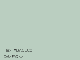 Hex #bacec0 Color is a light green color and the nearest color is Powder Ash #bcc9c2. Hex code #bacec0 and RGB value is rgb(186,206,192). In RGB color space, this color is composed of 73% red, 81% green, 75% blue, In CMYK color space, this color is composed of 10% cyan, 0% magenta, 7% yellow , 19% black , In HSL color space, this color has a hue angle of 138° , 17% saturation and 77% lightness.