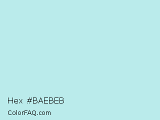 Hex #baebeb Color is a very light cyan color and the nearest color is Jagged Ice #c2e8e5. Hex code #baebeb and RGB value is rgb(186,235,235). In RGB color space, this color is composed of 73% red, 92% green, 92% blue, In CMYK color space, this color is composed of 21% cyan, 0% magenta, 0% yellow , 8% black , In HSL color space, this color has a hue angle of 180° , 55% saturation and 83% lightness.