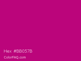 Hex #bb057b Color is a normal magenta color and the nearest color is Red Violet #c71585. Hex code #bb057b and RGB value is rgb(187,5,123). In RGB color space, this color is composed of 73% red, 2% green, 48% blue, In CMYK color space, this color is composed of 0% cyan, 97% magenta, 34% yellow , 27% black , In HSL color space, this color has a hue angle of 321° , 95% saturation and 38% lightness.