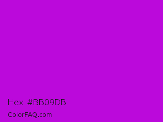Hex #bb09db Color is a normal purple color and the nearest color is Vivid Mulberry #b80ce3. Hex code #bb09db and RGB value is rgb(187,9,219). In RGB color space, this color is composed of 73% red, 4% green, 86% blue, In CMYK color space, this color is composed of 15% cyan, 96% magenta, 0% yellow , 14% black , In HSL color space, this color has a hue angle of 291° , 92% saturation and 45% lightness.