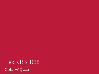 Hex #bb1b38 Color is a normal red color and the nearest color is Cardinal #c41e3a. Hex code #bb1b38 and RGB value is rgb(187,27,56). In RGB color space, this color is composed of 73% red, 11% green, 22% blue, In CMYK color space, this color is composed of 0% cyan, 86% magenta, 70% yellow , 27% black , In HSL color space, this color has a hue angle of 349° , 75% saturation and 42% lightness.