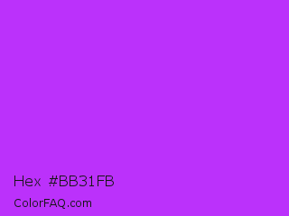 Hex #bb31fb Color is a normal purple color and the nearest color is Veronica #a020f0. Hex code #bb31fb and RGB value is rgb(187,49,251). In RGB color space, this color is composed of 73% red, 19% green, 98% blue, In CMYK color space, this color is composed of 25% cyan, 80% magenta, 0% yellow , 2% black , In HSL color space, this color has a hue angle of 281° , 96% saturation and 59% lightness.