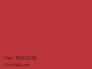 Hex #bb353b Color is a normal red color and the nearest color is Well Read #b43332. Hex code #bb353b and RGB value is rgb(187,53,59). In RGB color space, this color is composed of 73% red, 21% green, 23% blue, In CMYK color space, this color is composed of 0% cyan, 72% magenta, 68% yellow , 27% black , In HSL color space, this color has a hue angle of 357° , 56% saturation and 47% lightness.