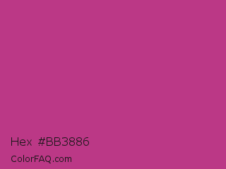 Hex #bb3886 Color is a normal magenta color and the nearest color is Medium Red Violet #bb3385. Hex code #bb3886 and RGB value is rgb(187,56,134). In RGB color space, this color is composed of 73% red, 22% green, 53% blue, In CMYK color space, this color is composed of 0% cyan, 70% magenta, 28% yellow , 27% black , In HSL color space, this color has a hue angle of 324° , 54% saturation and 48% lightness.
