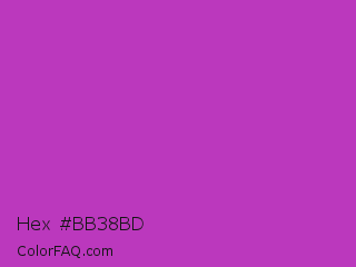 Hex #bb38bd Color is a normal magenta color and the nearest color is Steel Pink #cc33cc. Hex code #bb38bd and RGB value is rgb(187,56,189). In RGB color space, this color is composed of 73% red, 22% green, 74% blue, In CMYK color space, this color is composed of 1% cyan, 70% magenta, 0% yellow , 26% black , In HSL color space, this color has a hue angle of 299° , 54% saturation and 48% lightness.