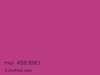 Hex #bb3b83 Color is a normal magenta color and the nearest color is Medium Red Violet #bb3385. Hex code #bb3b83 and RGB value is rgb(187,59,131). In RGB color space, this color is composed of 73% red, 23% green, 51% blue, In CMYK color space, this color is composed of 0% cyan, 68% magenta, 30% yellow , 27% black , In HSL color space, this color has a hue angle of 326° , 52% saturation and 48% lightness.