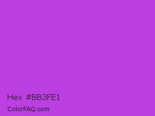 Hex #bb3fe1 Color is a normal purple color and the nearest color is Medium Orchid #ba55d3. Hex code #bb3fe1 and RGB value is rgb(187,63,225). In RGB color space, this color is composed of 73% red, 25% green, 88% blue, In CMYK color space, this color is composed of 17% cyan, 72% magenta, 0% yellow , 12% black , In HSL color space, this color has a hue angle of 286° , 73% saturation and 56% lightness.