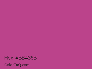 Hex #bb438b Color is a normal magenta color and the nearest color is Mulberry #c54b8c. Hex code #bb438b and RGB value is rgb(187,67,139). In RGB color space, this color is composed of 73% red, 26% green, 55% blue, In CMYK color space, this color is composed of 0% cyan, 64% magenta, 26% yellow , 27% black , In HSL color space, this color has a hue angle of 324° , 47% saturation and 50% lightness.