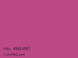 Hex #bb4887 Color is a normal magenta color and the nearest color is Mulberry #c54b8c. Hex code #bb4887 and RGB value is rgb(187,72,135). In RGB color space, this color is composed of 73% red, 28% green, 53% blue, In CMYK color space, this color is composed of 0% cyan, 61% magenta, 28% yellow , 27% black , In HSL color space, this color has a hue angle of 327° , 46% saturation and 51% lightness.