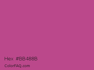 Hex #bb488b Color is a normal magenta color and the nearest color is Mulberry #c54b8c. Hex code #bb488b and RGB value is rgb(187,72,139). In RGB color space, this color is composed of 73% red, 28% green, 55% blue, In CMYK color space, this color is composed of 0% cyan, 61% magenta, 26% yellow , 27% black , In HSL color space, this color has a hue angle of 325° , 46% saturation and 51% lightness.