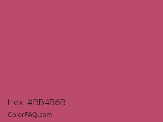 Hex #bb4b6b Color is a normal rose color and the nearest color is Deep Blush #b44668. Hex code #bb4b6b and RGB value is rgb(187,75,107). In RGB color space, this color is composed of 73% red, 29% green, 42% blue, In CMYK color space, this color is composed of 0% cyan, 60% magenta, 43% yellow , 27% black , In HSL color space, this color has a hue angle of 343° , 45% saturation and 51% lightness.