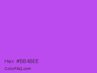 Hex #bb4bee Color is a light purple color and the nearest color is Medium Orchid #ba55d3. Hex code #bb4bee and RGB value is rgb(187,75,238). In RGB color space, this color is composed of 73% red, 29% green, 93% blue, In CMYK color space, this color is composed of 21% cyan, 68% magenta, 0% yellow , 7% black , In HSL color space, this color has a hue angle of 281° , 83% saturation and 61% lightness.