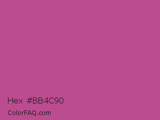 Hex #bb4c90 Color is a normal magenta color and the nearest color is Mulberry #c54b8c. Hex code #bb4c90 and RGB value is rgb(187,76,144). In RGB color space, this color is composed of 73% red, 30% green, 56% blue, In CMYK color space, this color is composed of 0% cyan, 59% magenta, 23% yellow , 27% black , In HSL color space, this color has a hue angle of 323° , 45% saturation and 52% lightness.