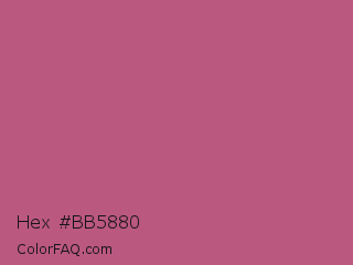 Hex #bb5880 Color is a normal rose color and the nearest color is Tapestry #b05e81. Hex code #bb5880 and RGB value is rgb(187,88,128). In RGB color space, this color is composed of 73% red, 35% green, 50% blue, In CMYK color space, this color is composed of 0% cyan, 53% magenta, 32% yellow , 27% black , In HSL color space, this color has a hue angle of 336° , 42% saturation and 54% lightness.