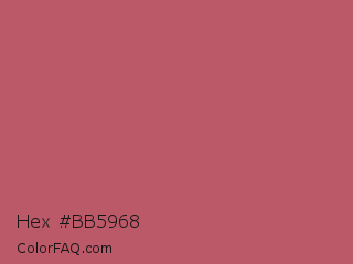 Hex #bb5968 Color is a normal red color and the nearest color is Popstar #be4f62. Hex code #bb5968 and RGB value is rgb(187,89,104). In RGB color space, this color is composed of 73% red, 35% green, 41% blue, In CMYK color space, this color is composed of 0% cyan, 52% magenta, 44% yellow , 27% black , In HSL color space, this color has a hue angle of 351° , 42% saturation and 54% lightness.