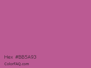 Hex #bb5a93 Color is a normal magenta color and the nearest color is Mulberry #c54b8c. Hex code #bb5a93 and RGB value is rgb(187,90,147). In RGB color space, this color is composed of 73% red, 35% green, 58% blue, In CMYK color space, this color is composed of 0% cyan, 52% magenta, 21% yellow , 27% black , In HSL color space, this color has a hue angle of 325° , 42% saturation and 54% lightness.