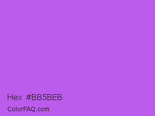 Hex #bb5beb Color is a light purple color and the nearest color is Medium Orchid #ba55d3. Hex code #bb5beb and RGB value is rgb(187,91,235). In RGB color space, this color is composed of 73% red, 36% green, 92% blue, In CMYK color space, this color is composed of 20% cyan, 61% magenta, 0% yellow , 8% black , In HSL color space, this color has a hue angle of 280° , 78% saturation and 64% lightness.