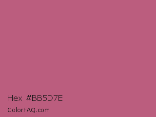 Hex #bb5d7e Color is a normal rose color and the nearest color is Tapestry #b05e81. Hex code #bb5d7e and RGB value is rgb(187,93,126). In RGB color space, this color is composed of 73% red, 36% green, 49% blue, In CMYK color space, this color is composed of 0% cyan, 50% magenta, 33% yellow , 27% black , In HSL color space, this color has a hue angle of 339° , 41% saturation and 55% lightness.