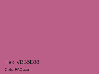 Hex #bb5e88 Color is a normal rose color and the nearest color is Tapestry #b05e81. Hex code #bb5e88 and RGB value is rgb(187,94,136). In RGB color space, this color is composed of 73% red, 37% green, 53% blue, In CMYK color space, this color is composed of 0% cyan, 50% magenta, 27% yellow , 27% black , In HSL color space, this color has a hue angle of 333° , 41% saturation and 55% lightness.