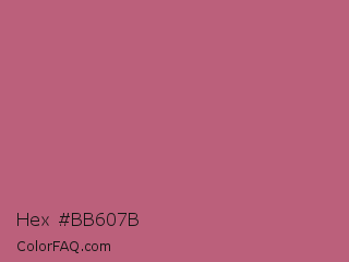 Hex #bb607b Color is a normal rose color and the nearest color is Tapestry #b05e81. Hex code #bb607b and RGB value is rgb(187,96,123). In RGB color space, this color is composed of 73% red, 38% green, 48% blue, In CMYK color space, this color is composed of 0% cyan, 49% magenta, 34% yellow , 27% black , In HSL color space, this color has a hue angle of 342° , 40% saturation and 55% lightness.