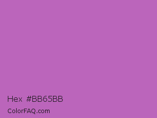 Hex #bb65bb Color is a normal magenta color and the nearest color is Fuchsia Pink #c154c1. Hex code #bb65bb and RGB value is rgb(187,101,187). In RGB color space, this color is composed of 73% red, 40% green, 73% blue, In CMYK color space, this color is composed of 0% cyan, 46% magenta, 0% yellow , 27% black , In HSL color space, this color has a hue angle of 300° , 39% saturation and 56% lightness.