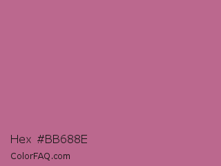 Hex #bb688e Color is a normal rose color and the nearest color is Turkish Rose #b57281. Hex code #bb688e and RGB value is rgb(187,104,142). In RGB color space, this color is composed of 73% red, 41% green, 56% blue, In CMYK color space, this color is composed of 0% cyan, 44% magenta, 24% yellow , 27% black , In HSL color space, this color has a hue angle of 333° , 38% saturation and 57% lightness.
