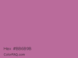 Hex #bb6b9b Color is a normal magenta color and the nearest color is Pearly Purple #b768a2. Hex code #bb6b9b and RGB value is rgb(187,107,155). In RGB color space, this color is composed of 73% red, 42% green, 61% blue, In CMYK color space, this color is composed of 0% cyan, 43% magenta, 17% yellow , 27% black , In HSL color space, this color has a hue angle of 324° , 37% saturation and 58% lightness.