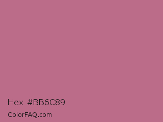 Hex #bb6c89 Color is a normal rose color and the nearest color is Turkish Rose #b57281. Hex code #bb6c89 and RGB value is rgb(187,108,137). In RGB color space, this color is composed of 73% red, 42% green, 54% blue, In CMYK color space, this color is composed of 0% cyan, 42% magenta, 27% yellow , 27% black , In HSL color space, this color has a hue angle of 338° , 37% saturation and 58% lightness.