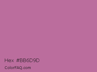 Hex #bb6d9d Color is a normal magenta color and the nearest color is Pearly Purple #b768a2. Hex code #bb6d9d and RGB value is rgb(187,109,157). In RGB color space, this color is composed of 73% red, 43% green, 62% blue, In CMYK color space, this color is composed of 0% cyan, 42% magenta, 16% yellow , 27% black , In HSL color space, this color has a hue angle of 323° , 36% saturation and 58% lightness.