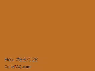 Hex #bb7128 Color is a normal orange color and the nearest color is Liver Dogs #b86d29. Hex code #bb7128 and RGB value is rgb(187,113,40). In RGB color space, this color is composed of 73% red, 44% green, 16% blue, In CMYK color space, this color is composed of 0% cyan, 40% magenta, 79% yellow , 27% black , In HSL color space, this color has a hue angle of 30° , 65% saturation and 45% lightness.