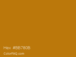 Hex #bb780b Color is a normal orange color and the nearest color is Pirate Gold #ba7f03. Hex code #bb780b and RGB value is rgb(187,120,11). In RGB color space, this color is composed of 73% red, 47% green, 4% blue, In CMYK color space, this color is composed of 0% cyan, 36% magenta, 94% yellow , 27% black , In HSL color space, this color has a hue angle of 37° , 89% saturation and 39% lightness.